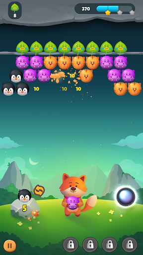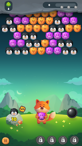 In this free casual game you need to pick direction of a bubble to shoot it at the rows of other bubbles and match 3 or more for them to disappear. Each bubble is a cute animal!