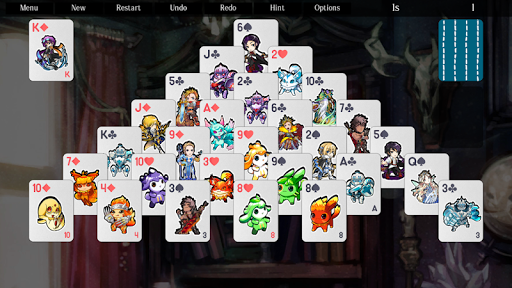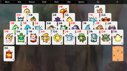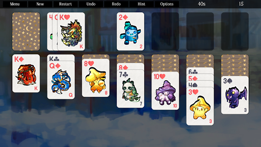 If you enjoy solitaire/patience games, this app has a lot to offer. Over 70 versions of solitaire (from Klondike, Pyramid, FreeCell, Three Peaks to lesser known ones). Several card sets with pictures of adorable fantasy characters. Relaxing music tracks. In-game help where you can learn the rules of almost all solitaire variations that exist.