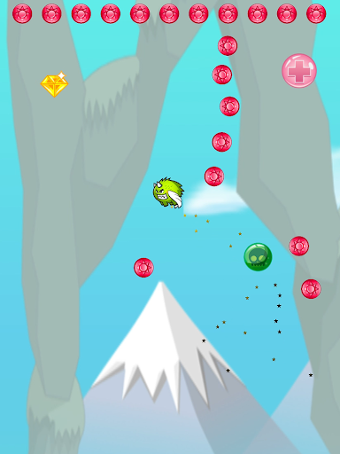 Tap your screen to go up to open the next level. Stay away from the green poison and grab as many diamonds as possible to unlock new monster characters.