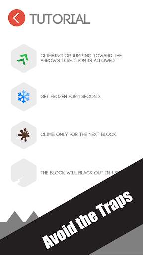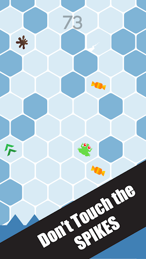 Leading the frog to stay away from the skies behind, and avoid being twined by the traps for too long. Frogs can do single-step moves, that is climbing to an adjacent block, or to jump over a blacked obstacle in between blocks of equal distance. Remember, climbing has a relatively slower moving speed than jumping. Players are going to be challenged by the increasing number of traps, the fewer blacked obstacles when moving forward and the accelerating moving speed.