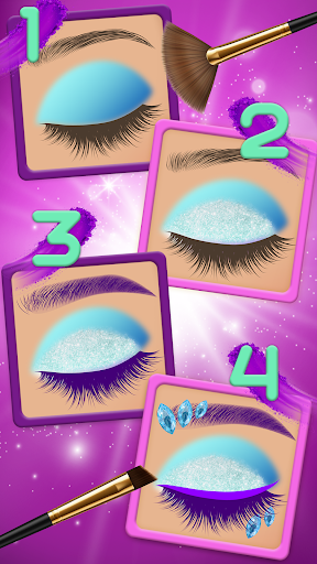 • paint your eyelashes and eyeshadow with unique colors of eye makeup game