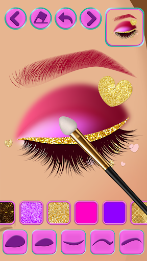 Eye makeup for girls with levels - is a beauty salon game with perfect eye makeup: glitter eyeshadows, color eyeliner and mascara, fashion makeup stickers. Become a makeup artist with eye makeup game!