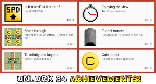 ● Compare your distance, speed, time of survival etc. with your friends on the leaderboards!