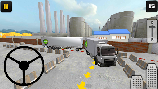 In Distribution Truck Simulator 3D you'll learn how to transport boxes and crates with your truck and trailer. The trailer is long and not easy to maneuver. Driving with a truck and dolly trailer is not easy, you need to know your truck. You steer easily too much for example. You also need to know the turning radius of your truck and trailer, otherwise you'll hit an object for example. In 15 realistic situations you'll learn how to drive and maneuver with the truck and dolly trailer. To finish a level you first have to attach the trailer, to do that follow the red arrows. After the trailer is attached, you have to park your truck and trailer, to do that follow the yellow arrows. The boxes and crates will load automatically.