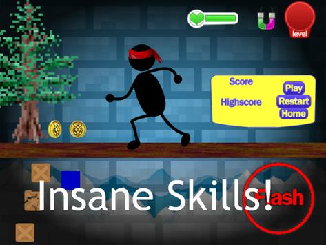 How to play Stickman Heroes free game is by running on to collect those gold coins to get points. Keep on running and avoid the obstacles such as the brick and gap between the logs and run on like he is on a a stickman revenge 2 mission.