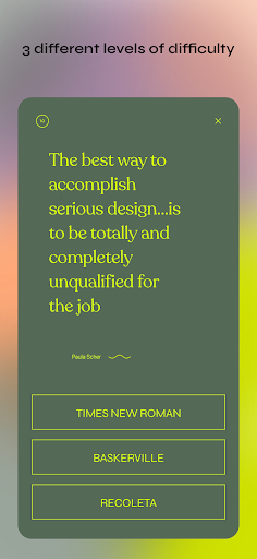 Guess 102 fonts through 3 different levels to reach the maximum design nerdiness, but remember:
