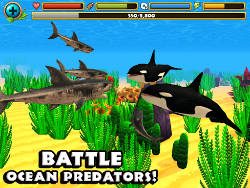 + LEVEL UP YOUR SHARKS - Gain experience by defeating other animals and level up your sharks to increase their health, attack damage, and even unlock new shark skins!