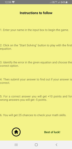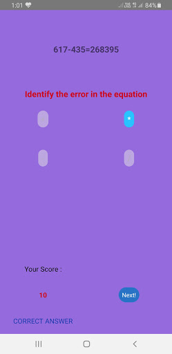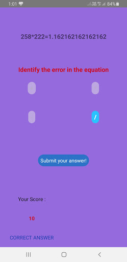 PLAY WITH EQUATIONS is an app to check your basic mathematical skills, developed by Etash Imtiyaz Hussain, a 10-year old boy. In this Math game, you need to identify the error in the given equations and correct it using the right mathematical operations " , -,