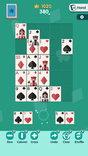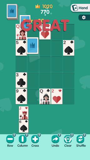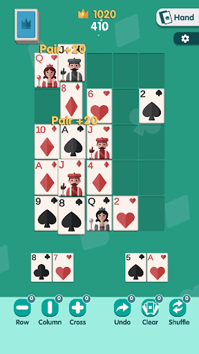 In the simple casual puzzle, all you need to do is to place the cards dealt to you into the table to form a hand of poker and clear those cards while score points in the process.