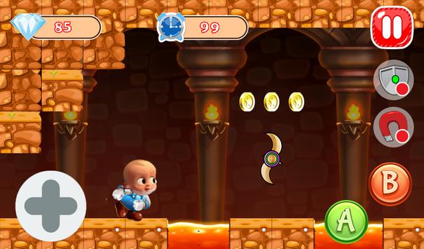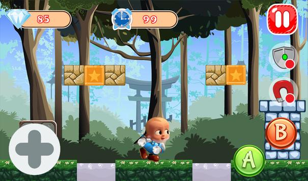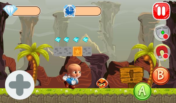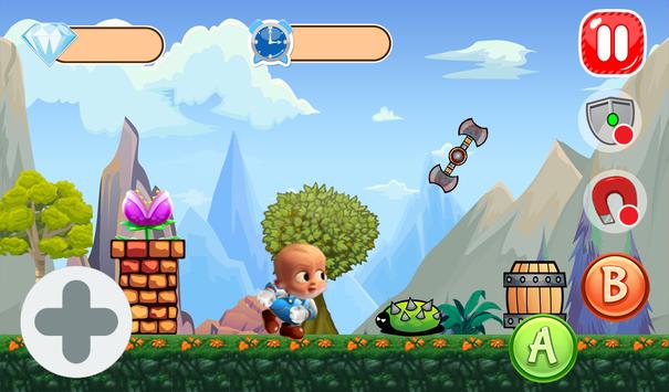 Super Boss Baby World est un voyage de super boy. Dans la jungle de chaleur,Boss Baby doit passer tellement de menaces à courir pour cibler monde. Sur sa route,