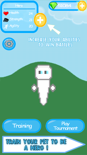 Take care of your hero/pet by training, with various mini games in the training area by earning great rewards, many jewels, combine different fruit, memory games, memorize cards of numbers, shoot the duck and more!
