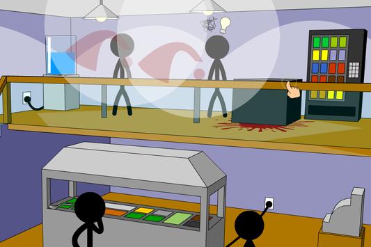 제1관 - 먼저 아래층의 금전 등록기를 클릭하여 돈이 나온 후 2층 오른쪽의 그 전구를 클릭합니다. 오른쪽의 판매기를 신속히 클릭하고 정수기의 플러그를 신속히 클립합니다. 2층의 그 사람이 가서 정수기의 플러그를 다칠 때 물통을 신속히 클릭한 후 1층의 그 전원 플러그를 신속히 클릭합니다. 그리고 왼쪽의 판매기를 클릭한 후 왼쪽의 전구를 클릭합니다.