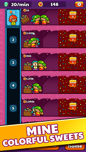 Candy Mine Idle Clicker is one of the best clicker games for girls on the store! Build your own mine, hire candy girls, dig candy and prosper! Time is money, so don’t waste your time and DOWNLOAD this idle adventure of candy girls heroes now! FOR FREE!