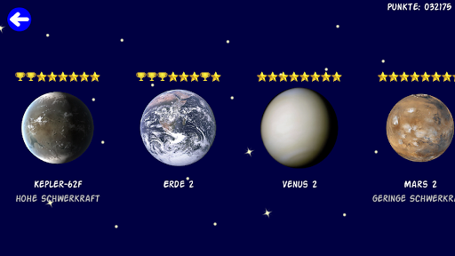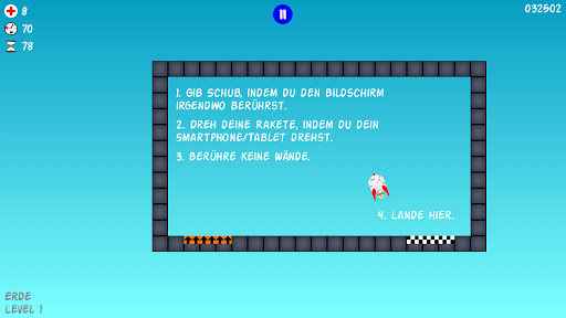 Give full thrust and navigate your rocket to landing platforms on different planets! But be aware that it's not easy to control. You always have to adapt to the actual planet's gravity.