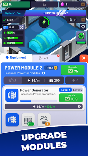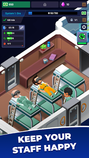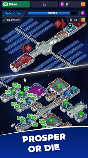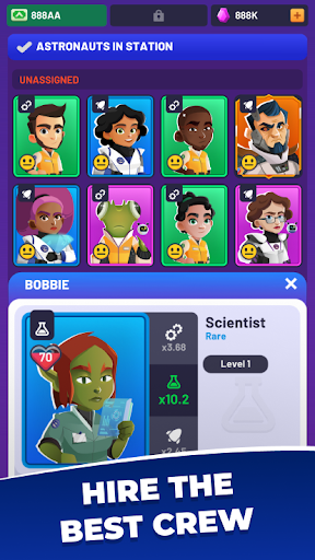 Start with one astronaut onboard and develop your crew with the station evolution. Manage station upgrades, process the incoming meteors to get money and evolve the production.