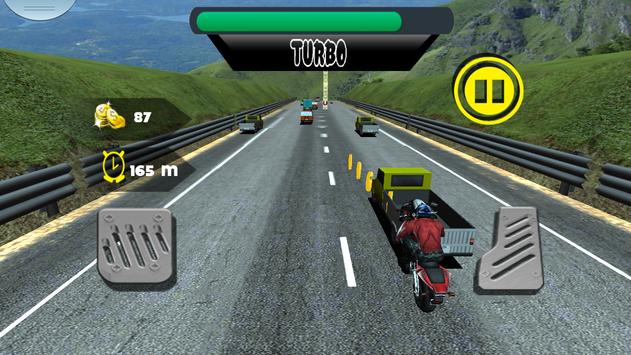 Your Mission is to complete the levels by racing through the different roads. Advance the racing level after unlock all racing roads by getting more coins. More Travel gives more distance occurred; hence it unlocks your traffic roads. Kick off other bikes to clean your way towards the victory. You can deviate attention of opponent bikes by punching and kicking. Use Nitro to increase speed of your bike. Win race again and again to win cash so that you can buy new bike from the Virtual Purchasing Shop.