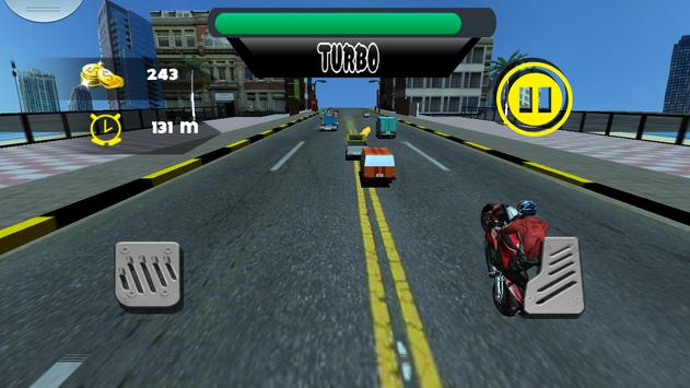 Get ready for bike racing base on a real physics bike!Race and stunt the bike through endless road adventure and unlock 3 amazing bikes.Hit on Fight button to deviate bikes attention from race road.Fight with other bikes by kicking and punching. Control the movement of Bike with tilt the device left right. Perform exciting stunts to get bonus cash. Satisfy your Hunger towards race. More races = More cash. Play and update your Racing Bike with new exciting Bikes from the store. This 3D Bike racing game has 3 different levels or modes, Time Trial, Time Attack,
