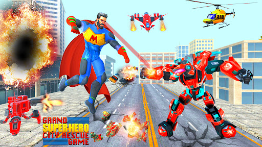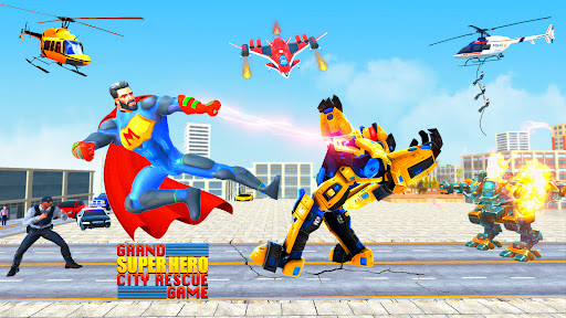 You are given a chance to show yourself in crime city as a real Superhero. Upgrade police robot hero game, smash the alien forces, fly in the city with crazy speed and superhero powers. Optimal skills will help you in your sacred war of Flying Captain Superhero Game. Time to become a real spider man rope hero. Let's download Flying rope hero game on play store & accomplish all challenging tasks & also enjoy open world action fun. Every new level has stronger villain and more complicated battle. Super villains and exciting levels are waiting for you! You won’t find it boring in any way you will get entertained by playing this Superhero Robot Game. Download the game and start a fight right now!