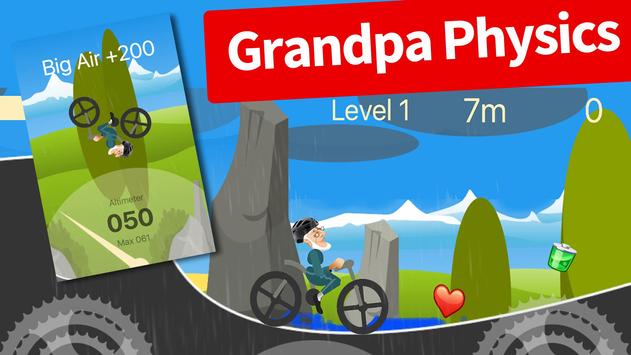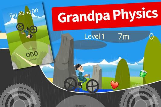 Tap the bottom left bicycle cog to pedal and lean backwards and the right cog to pedal and lean forwards. Remember this is a physics based bike game so just tap the controls and try to balance Grandpa when he’s in mid air.