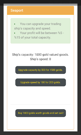 * Upgrade your trading ship. Set sail to get rich.