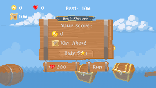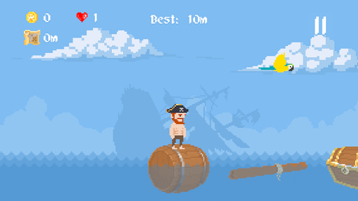 Help the pirate to collect all the treasures in pixel runner game "Ahoy!". Run, jump and do not lose sight of the parrot!