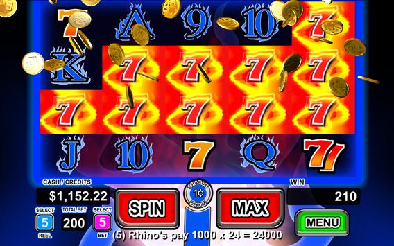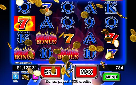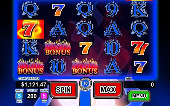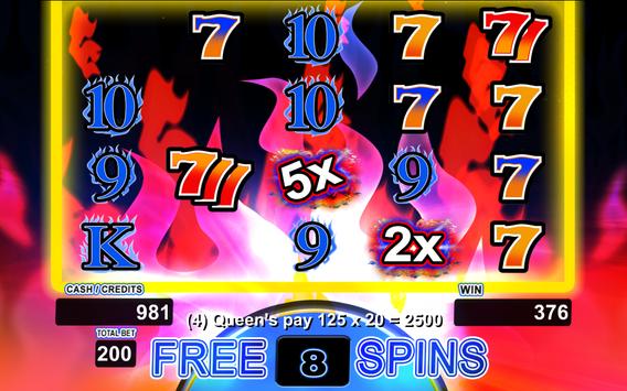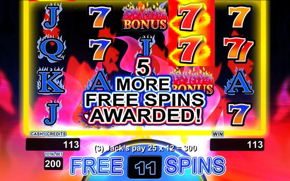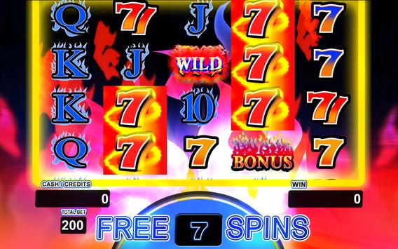 Each reel allows a maximum bet of 5 credits, which yields a maximum total bet of 200 credits. The bonus game with stacked fire 7 symbols, Free Spin Retriggers, and Wild Multipliers (2X, 3X, 5X) pay out with aggressive volatility. All of our games use real math and true industry standard random number generation for maximum Las Vegas excitement. Priced at less than one "max bet spin" at your local casino slot machine, you will truly enjoy the exciting experience offered by this game. This free version allows the player to play for free. Every day you receive a wheel spin which allows you to win credits to play on the game. In addition, random bonus free credits are awarded when you run out of money. Additional game credits can be purchased in the game menu via in-app purchase.