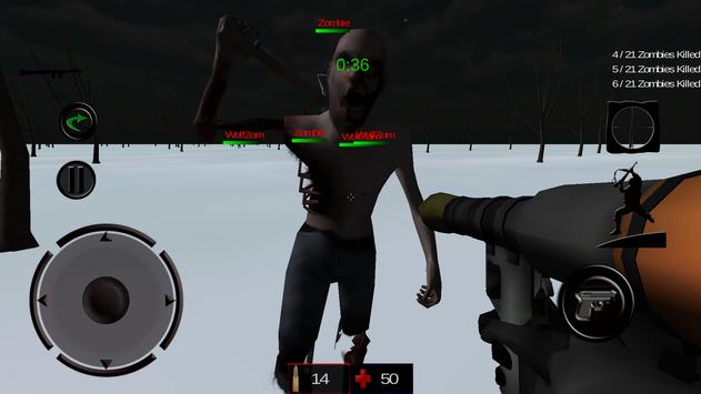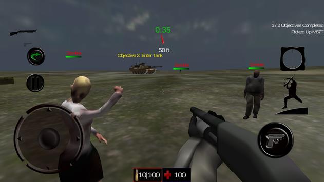 Does NOT take up much space in your phone's memory. New update available adds aim, sniper rifle, new level, better controls. Kill all the zombies! Full 3D world. Move around in a real world first person. All weapons, tank and helicopter are FREE! Achieve the objectives and complete the level. Try to beat your best times. In development and will have social, player vs player, achievements, world builder, leaderboards and more. Watch out for updates since notifications will be not be implemented until March. OOps this update we made movement much faster! Have fun! Available until whenever we change it!