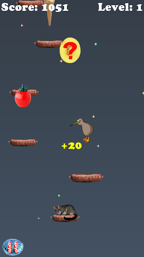 You love to jump and jump on your way to the stars. Up you go with the help of magical floating sausages and fluffy, bouncy possums. Watch out for your natural enemies who make life for a little jumping kiwi difficult. They will try to stop you and end your bouncing adventure.