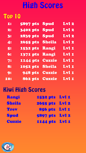 High scores for each of the 5 kiwis are collected.