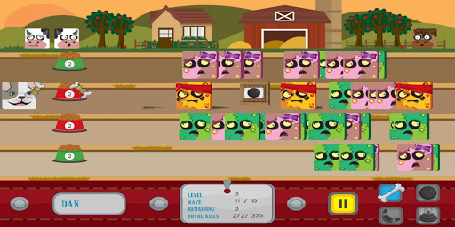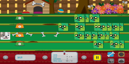 Defeat waves of zombies in this defense style game. Armed with a bone and several power ups, keep the zombies at bay as you battle across several levels, by timing and managing your attacks across 4 lanes.