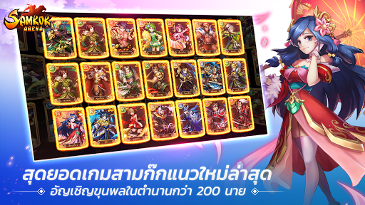 พบกับตำนานมหาสงครามครั้งใหญ่แห่งปฐพีใน Samkok Arena สุดยอดเกมสไตล์ Card Battle ซึ่งถูกสรรค์สร้าง มากจากเค้าโครงวรรณกรรมจีนอิงประวัติศาสตร์ สามก๊ก “Three Kingdoms” ที่พร้อมให้คุณได้ปลดปล่อยความสามารถและวางกุลยุทธ์การจัดทีมได้อย่างอิสระ พบกับแม่ทัพและขุนพลชื่อดัง มากมายกว่า 100 นาย อาทิเช่น โจโฉ กวนอู เล่าปี ลิโป้ ขงเบ้ง ฯ