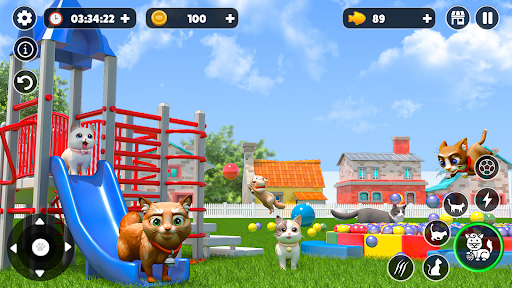 Play as a real cat in virtual cat pet cat simulator, explore huge houses and awesome park in virtual kitty cat games. Choose different cats and dress them as you like, try yourself in time challenges, break multiples objects, annoy the humans in virtual cat simulator pet game. Play with other kittens in the park, have fun and family in cat games! You can use the joystick on the left to move your cat, jump button on the right to make it fly and swipe to look around. Style your cat the way you want! You can choose from many different hats, funny glasses, collars and cute shoes to upgrade your cute kitty in pet cat family games. Just use the arrows to pick your outfit before the game and go show off! You can use the hit button on the right to smash objects with your awesome cat powers. Take cute cat on a walk, bathing cute cat, enjoy shopping with your cat, cleaning messy house & many more exciting missions in kitty games for pet cats in cat pet games.