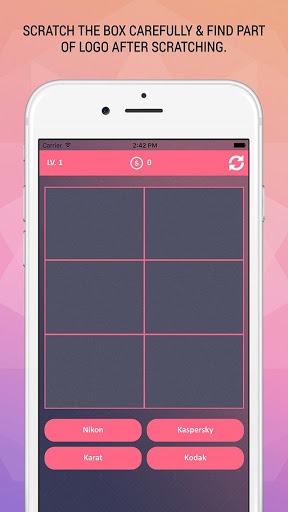 In main screen you can see brand logo is hidden and divided in six tiles. You have four option for guess the brand. Your brand name is rest within these given option. So, You only need to scratch the tiles & guess the brand. For correct guess you can get scratch coins.