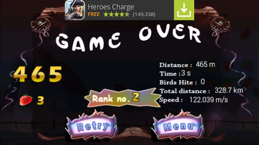The player should try to prevent the ball from falling down and also prevents the ball from eat thistly iron. If the player success the birds will shot the ball to far distance.