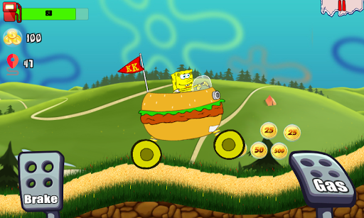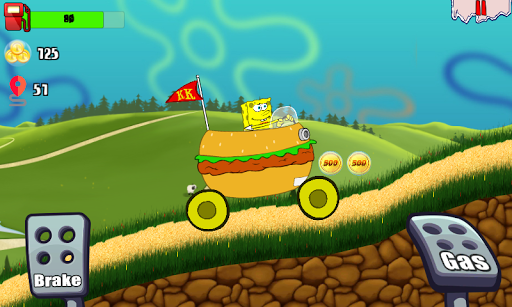 In this sponge kraby car racing game you can choose several vehicles like a kraby car made of burgers and other vehicles and also you can choose your favorite character and Collect all the coins found along the mountain path. bikini bottom which is found by the sponge car and patrick game to unlock the next bikini bottom world and also to renew the sponge car and buy other characters that you like.