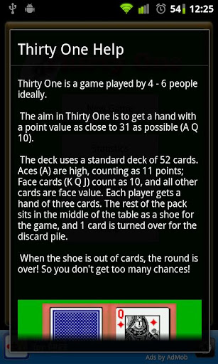 The goal is to get as close to 31 points as possible, and to not end the round with the lowest score!