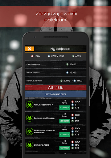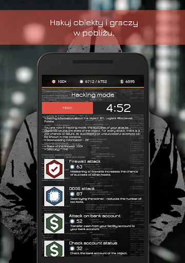 HackerGO is a multiplayer game so you can play with your friends, and it all plays out in the real world. By walking around you can take over objects, break into other players' systems, find different and fun bonuses that will help you stay in the game. The game was created for gamers seeking to experience the virtual world, walk the road yourself or use a dock that will embark on a journey for you, find bots, money and many more bonuses, and above all, hack objects and take them to own to earn money and increase their skills thanks to, which will make you stronger, and everything to become the number one hacker! Stay in constant contact with your friends using chat during the game, create your own clan to hack others together and get even stronger with help. Create a HackerGO world by creating your own objects, data stacks and radars. But watch out, everyone will try to stop you!