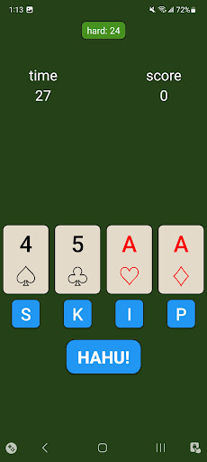 4. if you think you have a solution, press 'HAHU!', the main timer will pause for 15 seconds, and the HAHU timer (in red) will start for you to do your calculations