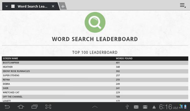 + Each word that you find counts towards increasing your position on the leaderboard