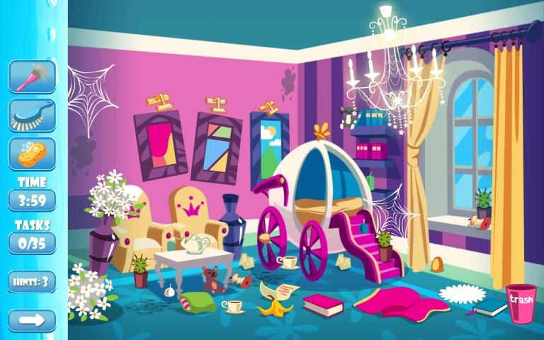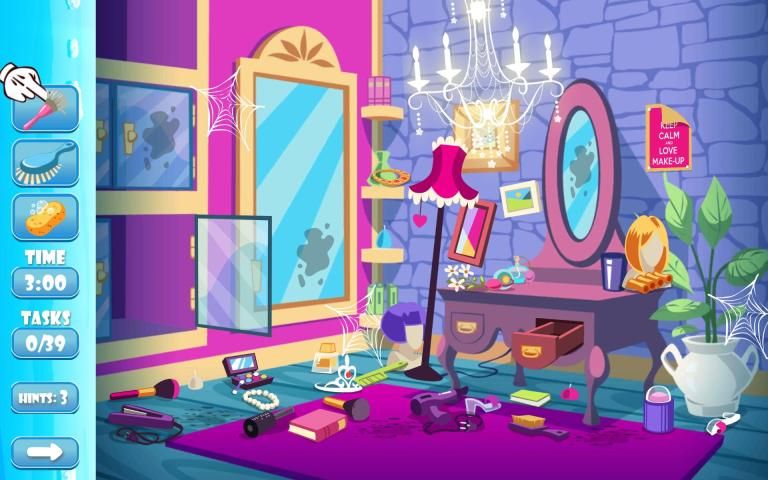 ◈ First clean up the rooms of Baby House like kitchen and bedroom. Wipe up dust, collect garbage in dustbin and toys into the toy basket, leave nothing dirty and fix the broken tiles with creative jigsaw puzzle! Re-arrange the dressing table things like lipsticks and creams.