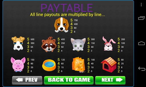 Puppy Slots bring you the joy and fortune from the lovely pets! Puppy, cat, rabbit! Enjoy the endless fun from this amazing slot machine! You will love it if you like slots games.