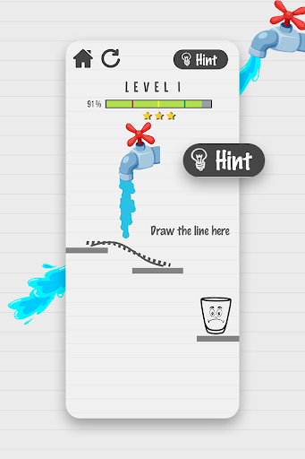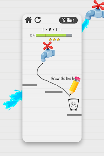 Use the pencil to draw lines and shapes to guide the water to the glass. But do not forget to observe for obstacles and platforms within the screen, as they will change how the water flows. counting on what proportion you draw, you'll win points at the top of every level. So plan your lines carefully; the less you draw, the more points you'll win!
