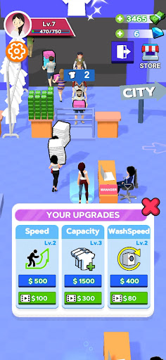 Indeed, don’t forget to improve your hero skills! Go to the manager desk to increase your speed and upgrade your hero to do the laundry faster. Also, upgrade the speed of the washing machines. Wash more clothes to earn more. Money will help to grow faster to build your own laundry empire. It’s time to become a millionaire tycoon!