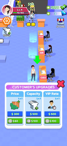 At first, you run the laundry yourself. But then you need help to cope with the influx of customers and their dirty clothes. Thus, in this tycoon simulator you have to do more than in most of the other cleaning games. You need to manage people for success! Get a HR Specialist to hire first workers. This will help you get rid of your laundry routine and focus on your business. Sometimes you will need to contact the HR department to hire new employees and improve your staff’s hard skills.