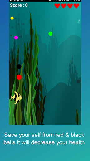 Your fish will follow your orders and when you tap on the screen, fish will move to the tap location. If it finds a balls which are not red or not black on its way, it will eat it automatically. Tap the fish!