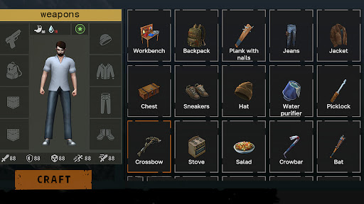 Collect materials and supplies scattered across the map, create necessary living equipment and tools to harvest trees and mines, prevent zombies from coming and improve the chance of survival