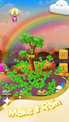 Plant a tree, and taking good care of it with water, sunlight, and power items. Let the tree grow and it will bring wealth to you! It's easy to play, all you have to do is tapping and upgrade your equipments. Don't hesitate to join the team of building the money forest!