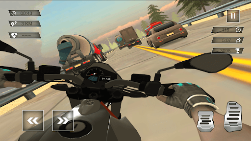 Moto Rider in Heavy Traffic is one of the drag racing games along with thrill, bike stunt tricks, and challenging career missions while moto riding. Its Rich tracks and varying scenes give a definitive motorcycle racing experience.