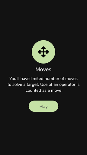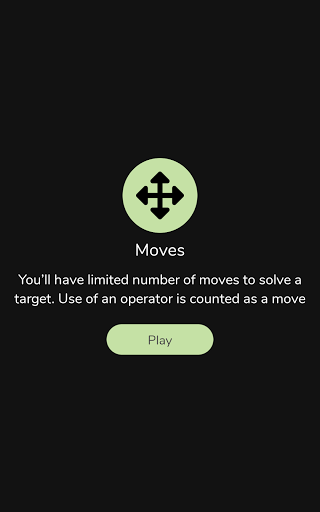2. Moves: Can you solve a math target with limited number of moves? Use of an operator is counted as a move. This is one of the most exciting game mode, and is very challenging. Test your math skills here :)