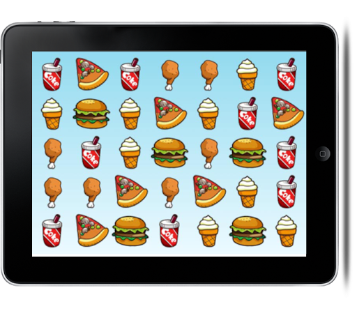 Switch food items placement with the ones next to get three or more food items lined up so that they crush.